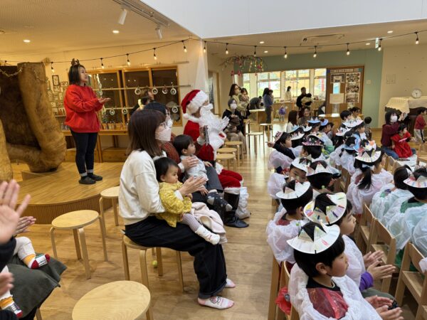 今日は認定こども園の ⭐︎おたのしみ会⭐︎ があり、25組60名近い方に参加いただきました。 エレクトーンの演奏に合わせ うたを歌ったり、ダンスをしたり。 サンタさんからプレゼントをもらい、 とっても嬉しそう。 最後はサンタさんと一緒に記念撮影。 サンタさん、プレゼントありがとう。