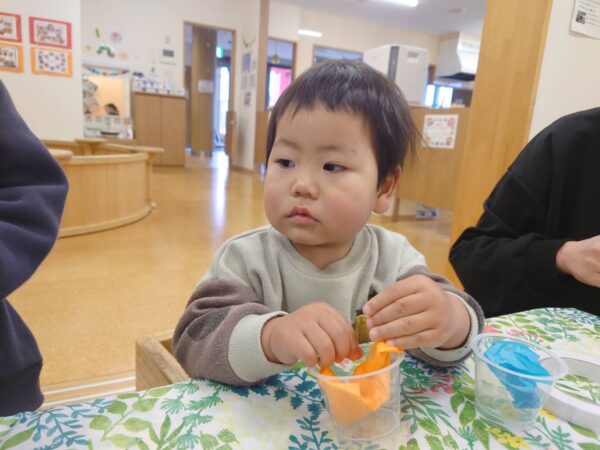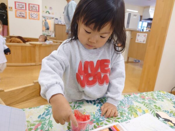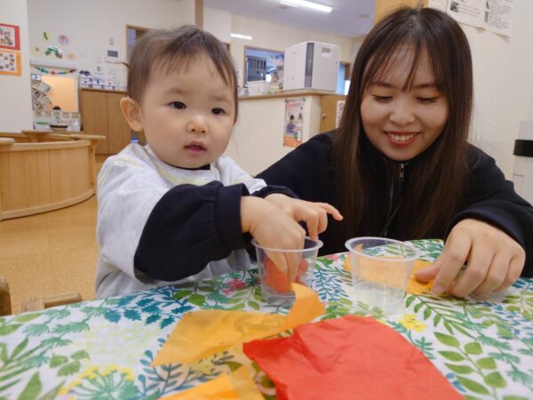 ゼリーカップに花紙を詰めて、