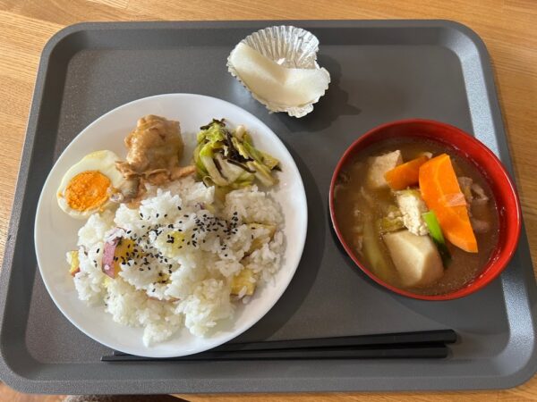 サツマイモご飯と豚汁(プチカフェランチ・気まぐれこども食堂)