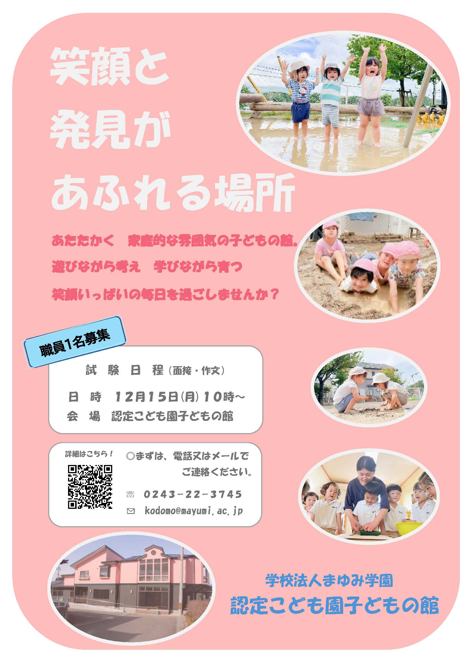 詳細は、添付の「採用チラシ」、「募集要項(子どもの館)」をご覧ください。