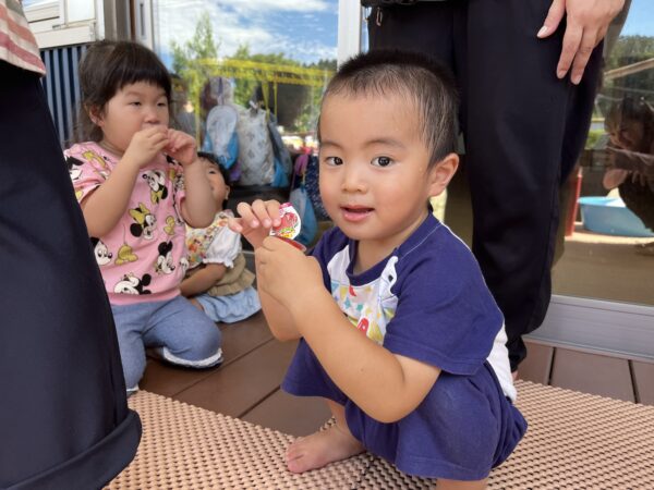 まゆみぷらすのお友達と一緒に流しゼリーをしました。 色とりどりのゼリーが次から次へと流れていきます。捕まえようと真剣な表情です。 「つめたい!」「おいしいね」と取れたゼリーを食べ、大喜びの子どもたちでした。 みんな一緒にゼリーを食べた後は、水遊び! ペットボトルに水を入れたり、じょうろで水を流してみたり、大きなプールでのびのびと遊びました。