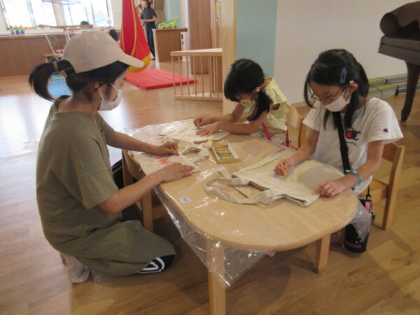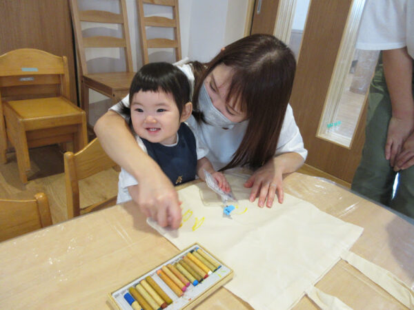 秋晴れの日曜日。 たくさんの方が遊びに来てくれました。 親子制作では、エコバッグ制作。 みんな素敵なオリジナルバッグが完成! 支援センター内、共有ホールでのバランス遊び、 園庭あそびなどを楽しみ、のんびりな休日を 過ごしていました。