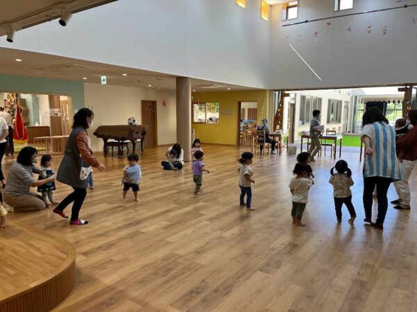 リズム遊びは、こども園のリス組さんも一緒に。