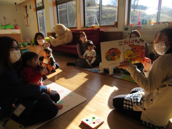 みんな大好き、絵本の読み聞かせ・リズム遊びの日。 今日の絵本の読み聞かせは、支援員のかおり先生! おともだちの名前を一人ずつ呼んで、タッチ! みんなお返事がとっても上手でした。 絵本も楽しかったね。 リズム遊びは、みお先生! おともだちもママたちも、みんなニコニコの時間です!