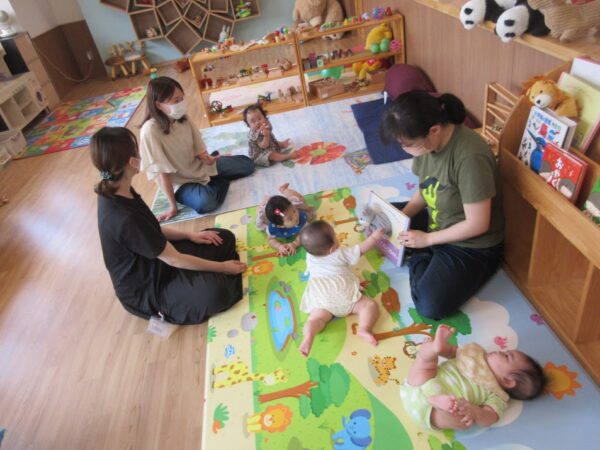今日の絵本の読み聞かせは センターの☆みく先生☆が担当。 リズム遊びは、マーブルの☆ゆうか先生☆。 集まったおともだちは、お家の人と一緒に 絵本やリズム遊びを楽しみました。 リズム遊びでは、小さいおともだちが多かったので 布遊び。わらべうたに合わせて、布遊び路楽しみ、 小さいおともだちもニコニコ笑顔! お家にある大きめのハンカチなどで、楽しんでみてくださいね。