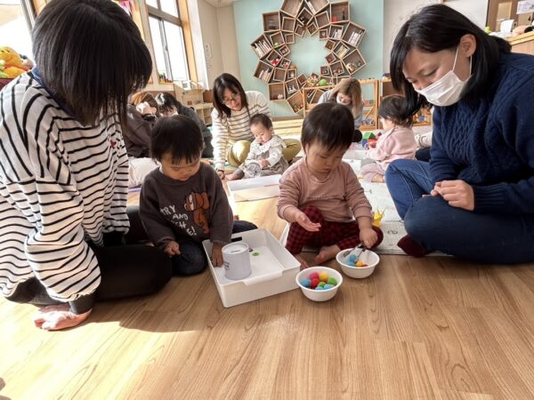 朝から雪が積もり、寒い一日でしたね。 今週の絵本の読み聞かせ・リズム遊びも みんなで楽しみました。 リズム遊びは、成長に合わせたあそびの後、 親子のふれあいタイム。 とっても素敵な時間です。