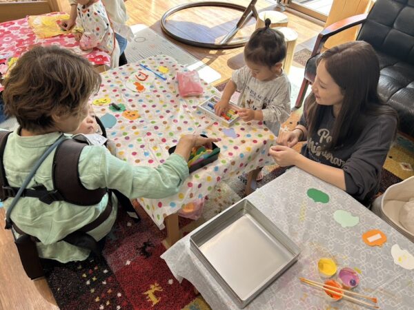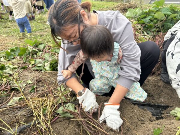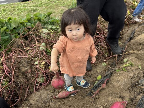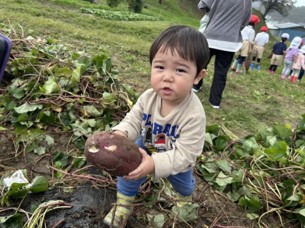 今日の作ってあそぼう(親子制作)では ★ハロウィン制作で『おばけ』とマントを制作。 駐車場の前にある畑で、 こども園の幼児部さんたちが植えた サツマイモの収穫をしていたので、 センターのおともだちも サツマイモほりに参加。 大きなサツマイモを持ってにっこり。