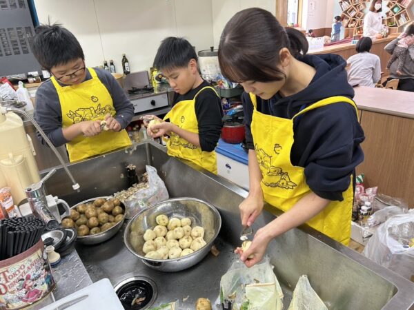 11月のこども食堂カレーの日。 小学生・大学生にお手伝いしてもらって、 大量の野菜の皮をむいたり、切ったり。 大活躍です。配膳も頑張っていました。 利用いただいた皆様、ありがとうございました。