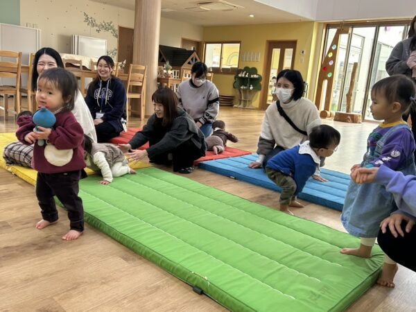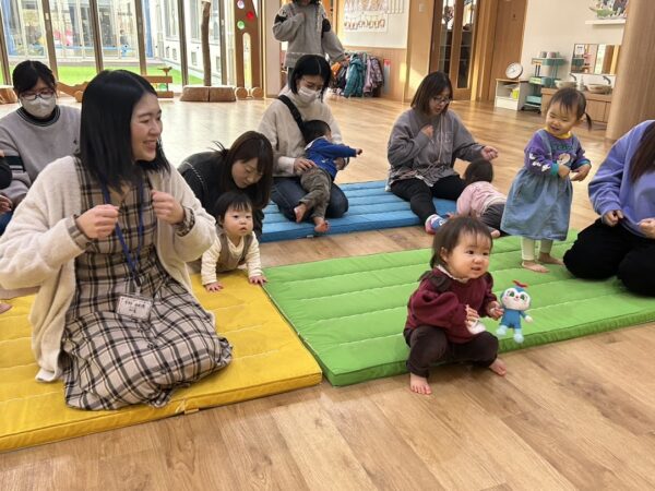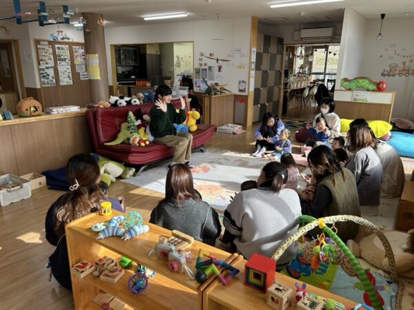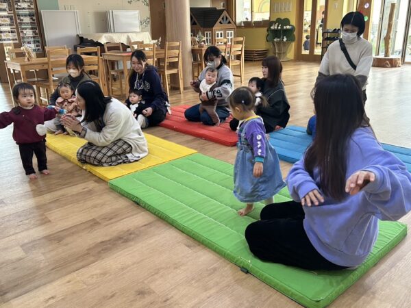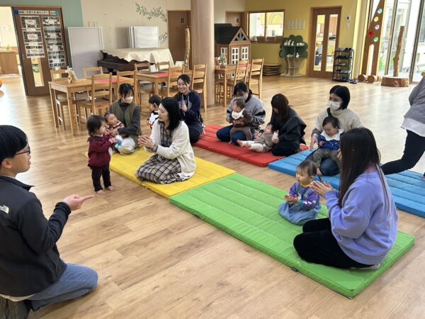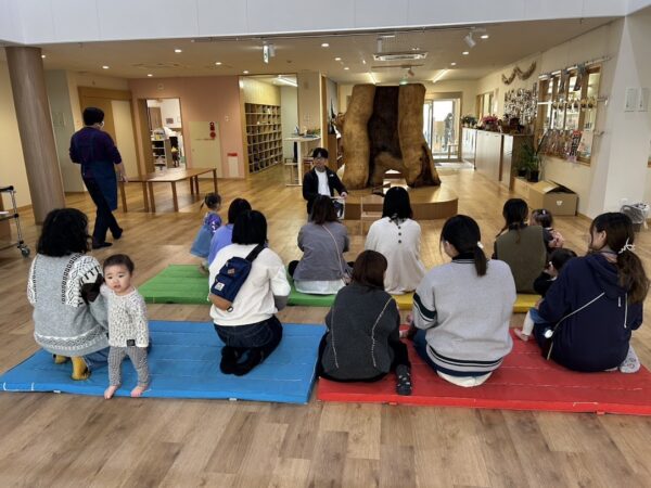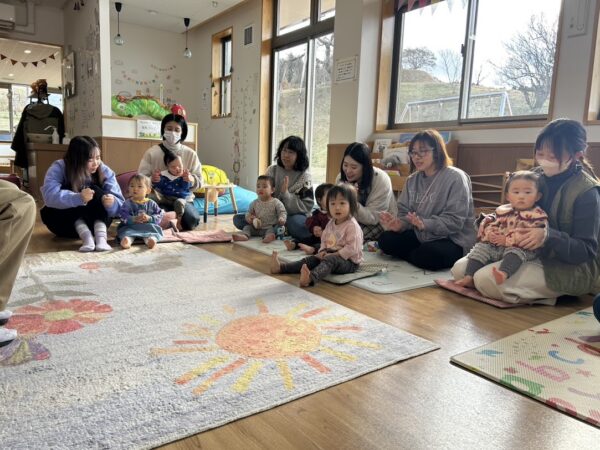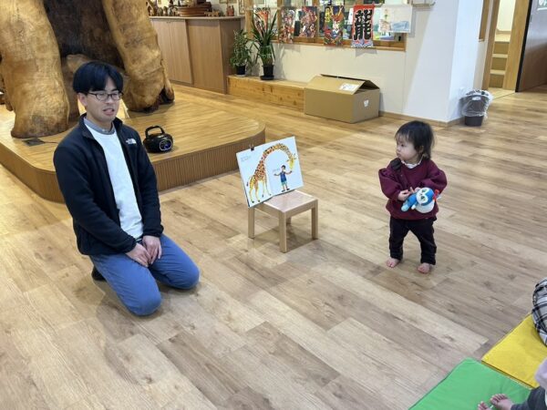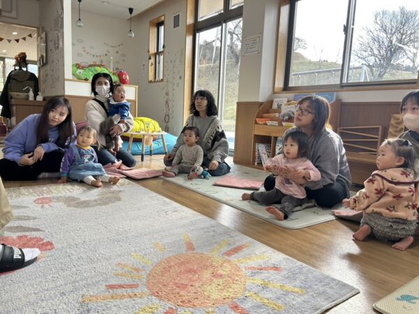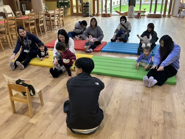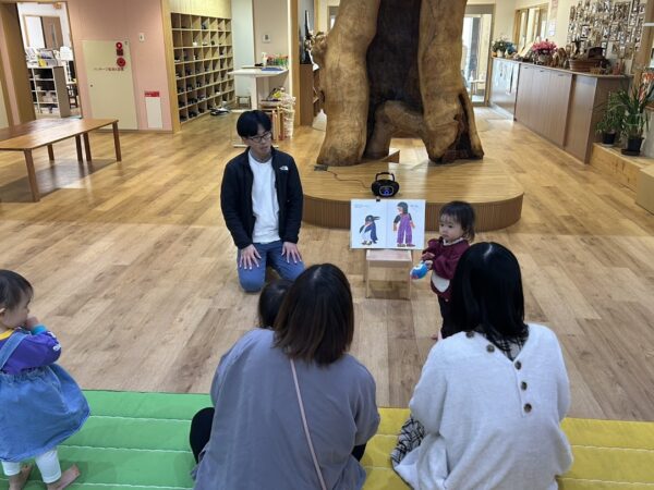 絵本の読み聞かせの担当の しゅんぺい先生の優しい声に、 こどもたちもお家の方もゆったりと 絵本を楽しんでいます。 リズム担当のゆうや先生は 今日は音楽に合わせてダンス! 毎回、こどもたちも何をするのか 楽しみにしています。 来週もお楽しみに!!