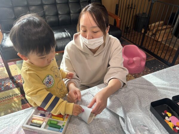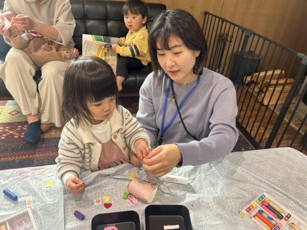 今日の作ってあそぼう(親子制作)では ✩バレンタインのプレゼント を作りました。 みんな、シールを貼ったり絵を描いたり真剣! 大好きなパパへの素敵なプレゼントが完成!! Denからチョコレートを中に入れて完成です。 パパたち、喜んでくれるかな?