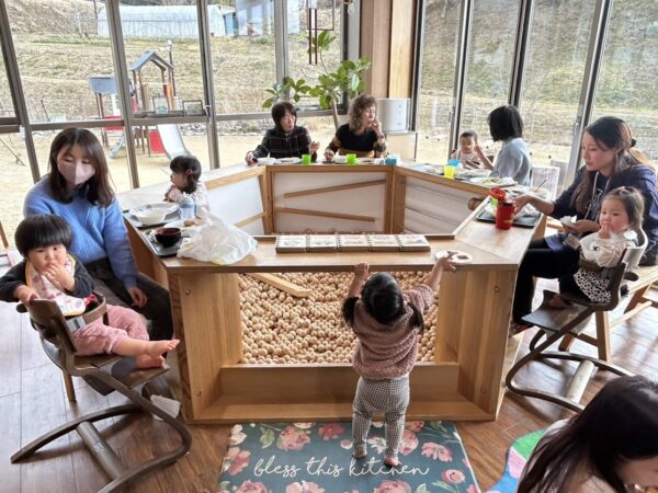 今日のプチカフェランチ・気まぐれこども食堂は ✩なんちゃってチーズバーガー 大人用はトルティーヤ生地、こども用はミニロールパンに ひき肉を薄く塗りつけて焼きました。 美味しいチーズバーガーです。
