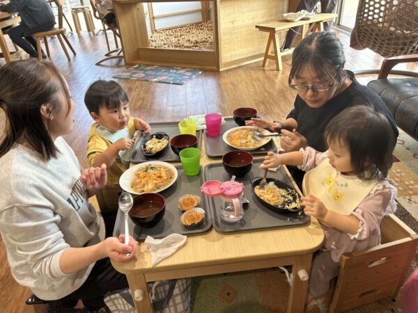 鶏ひき肉のふわ玉あんかけ丼(プチカフェランチ・気まぐれこども食堂)