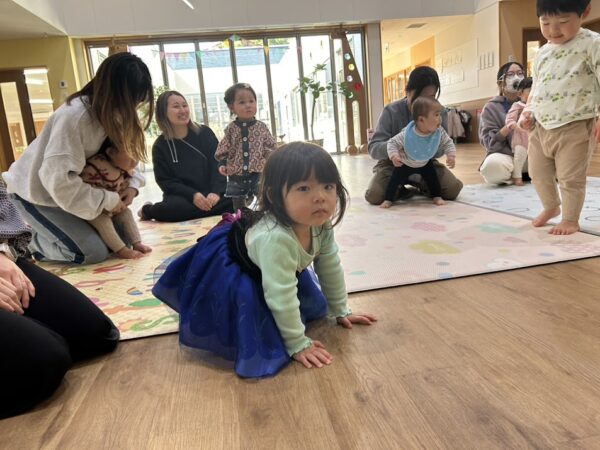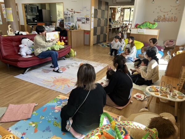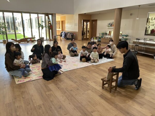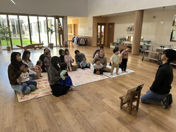 今日の絵本の読み聞かせ・リズム遊びの様子です。