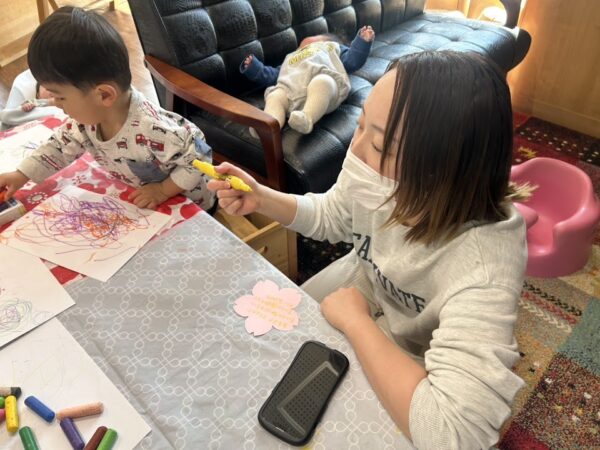 今日のあかちゃんひろばでは ✩Denでの思い出を、ママたちに書きてもらって それぞれ発表してもらいました。 『ママたち、先生たちに助けてもらった』 『おいしいごはん(きまぐれこども食堂)が食べれた』 『子どもの成長を共有できてよかった!』 などの話が上がり、盛り上がりました。