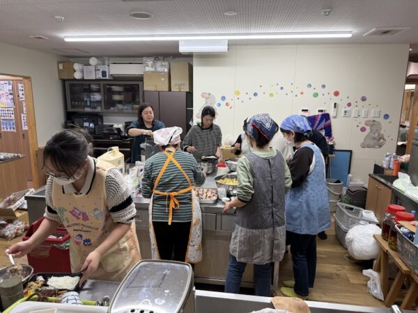 今年度1回目のこども食堂テイクアウトです。 今日は70食近く作りました。 職員と、地域のボランティアの方と一緒に 楽しく調理。 いつも東京から送っていただくパウンドケーキ、 お菓子にこどもたちは大喜びです。