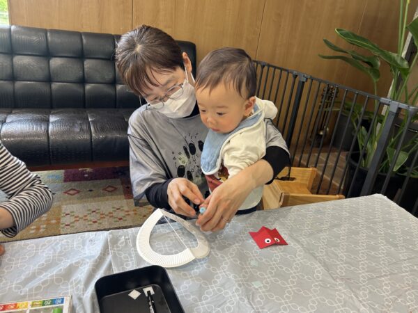 ゆらゆら揺れる、かわいいこいのぼりができました。