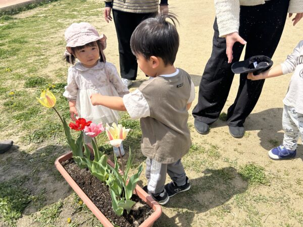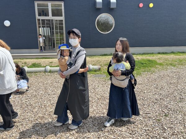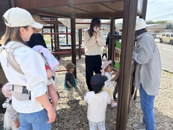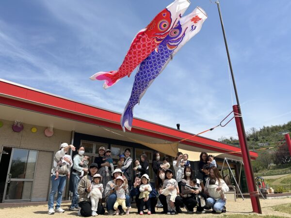 今日のあかちゃんひろばは ⭐︎園庭ピクニックをしました。 みんなで園庭を探検! 咲いているお花を見たり、ビオトープにいる生き物を探したり。 大きなこいのぼりと一緒にみんなで写真を撮りました。