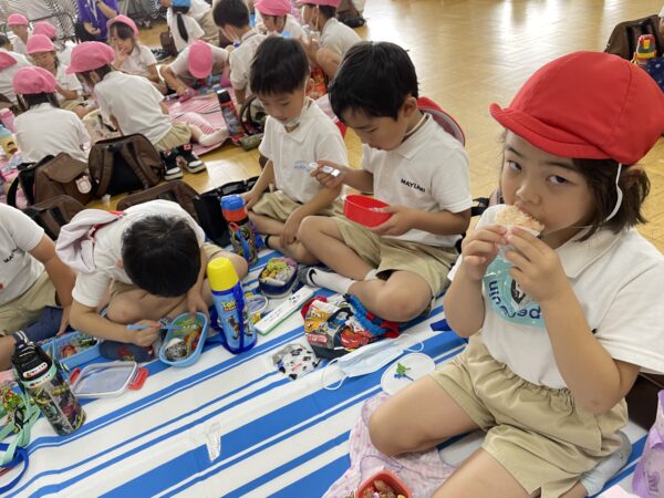 7月6日に年長児遠足で、アクアマリンふくしまに行ってきました。バスに乗り込んだ時には少し緊張していた子ども達も、水族館に到着するとグループの友達と見学を楽しんでいました。また、「何でこんな形をしているんだろう?」「不思議な色だね!」等とじっくり観察することで、発見や気付きもありました。今回の経験を今後の保育の中でも取り入れ、海の生き物や自然に触れていきたいと思います。