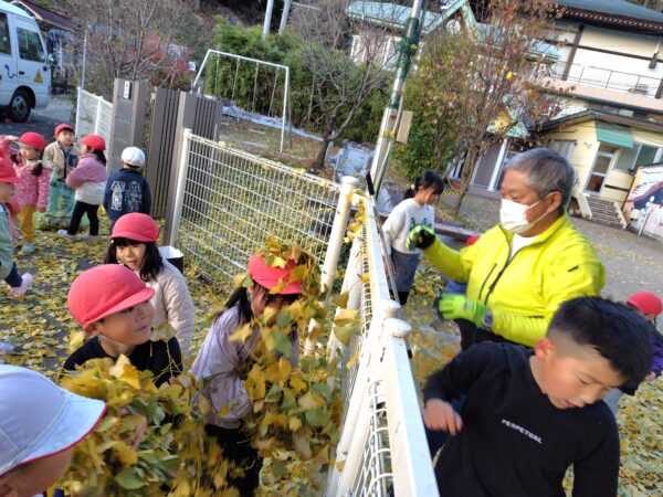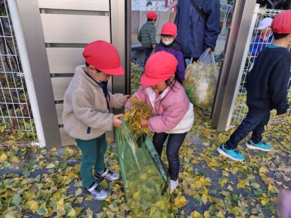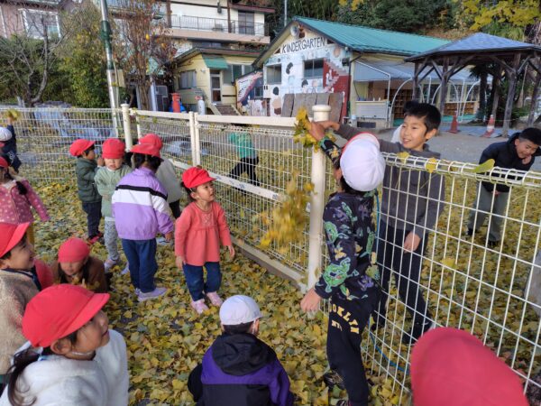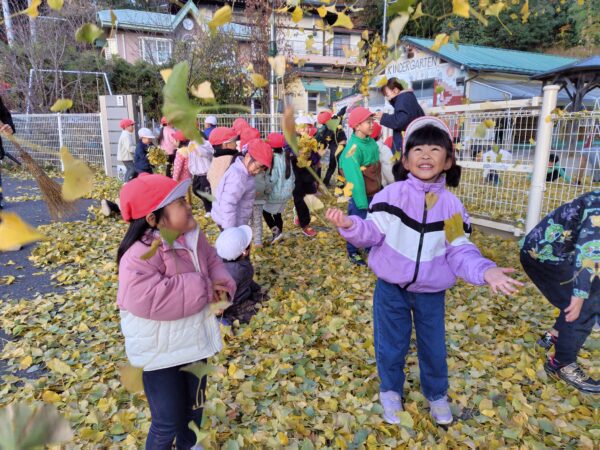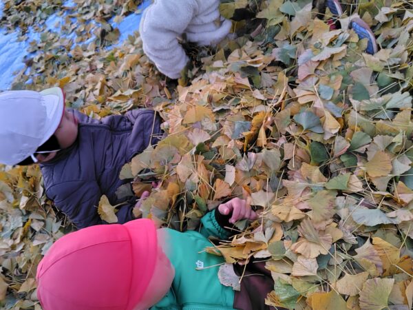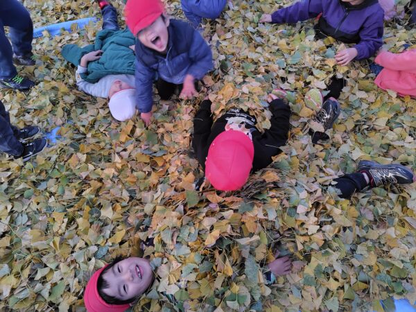 まゆみ本部に大きな銀杏の木があります。寒くなり葉がたくさん落ちてきたので遊びに行きました!たくさん集めて思い切り舞い上げたり、寝転んでみたり、アフタースクールまゆみの小学生とも一緒に存分に楽しみました。袋にたくさんつめてお土産に持ち帰ってきたので、乳児部やセンターの皆さんにも楽しんでほしいと思います!