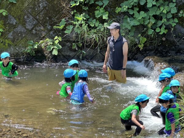 夏の暑い日が続いていますが、暑さに負けず 年長児と年中児の子ども達で川遊びに行ってきました! 年長児はさすがお泊り保育の経験を生かして 「だいじょうぶ?」 「怖かったらいってね、手ちゃんとにぎってるからね」 とお姉さんお兄さんの顔を見せてくれました。 年中児ははじめての体験にドキドキ! でも、年長児のおかげでとっても楽しい時間をすごせたようです。