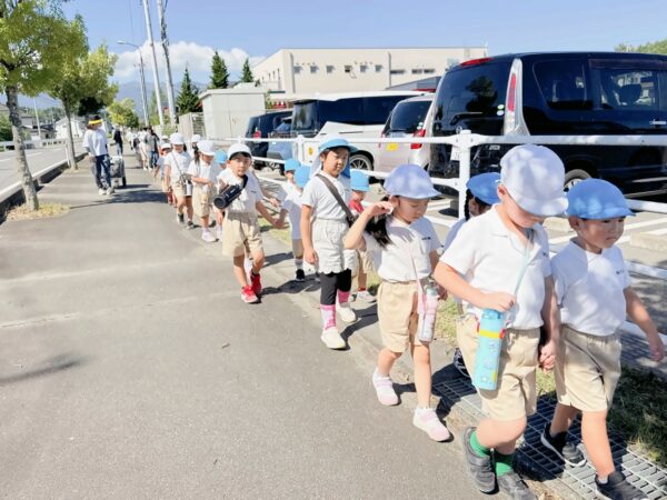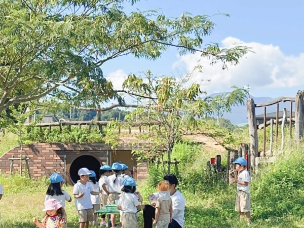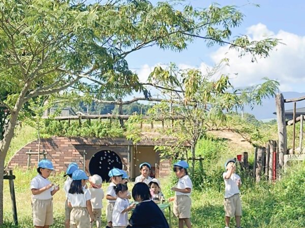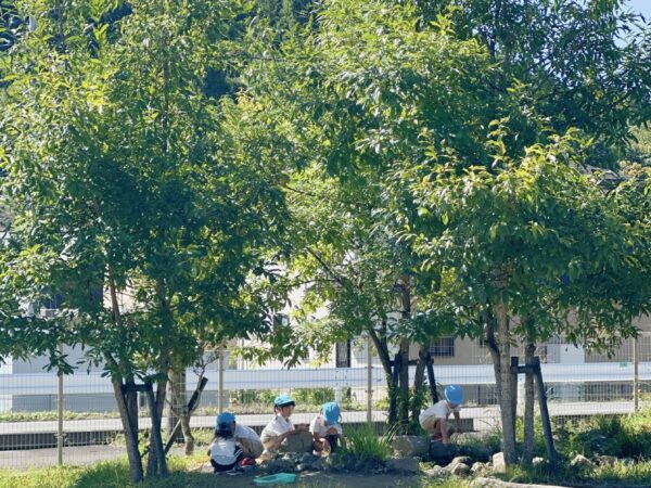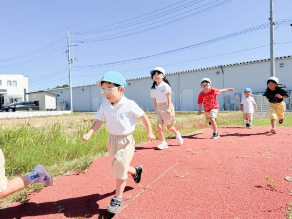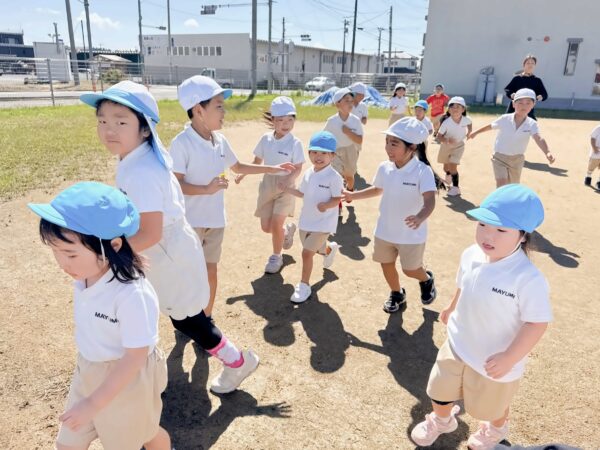 朝晩は涼しくなり、日中は少し汗ばむ時間もあります。 子どもたちは青空の下で元気に遊んだり、木陰でひと休みしたり、それぞれのペースで秋晴れを楽しんでいます。 第二園庭では、年長児に手を引かれながら、年少児も広い園庭を元気いっぱい駆け回りました。