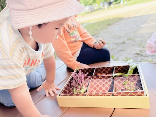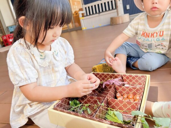 子どもたちの笑顔とともに、園庭にも秋の彩りが広がっています。