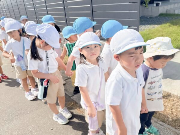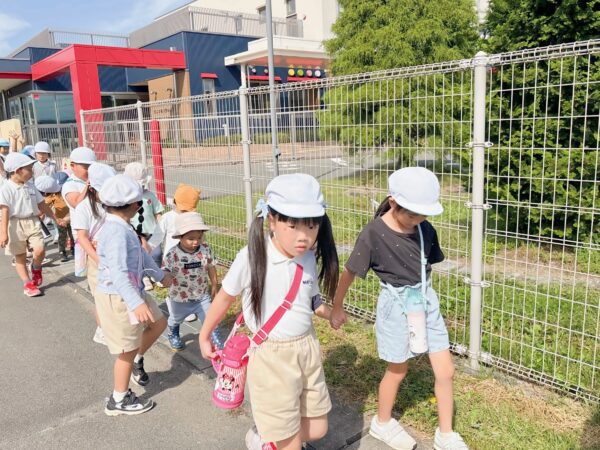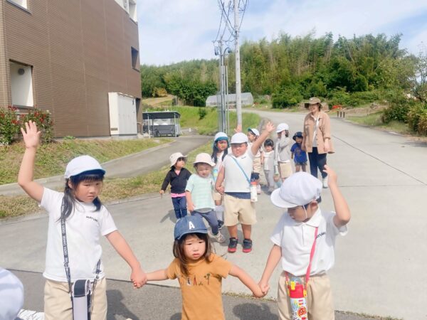 年長児はうさぎ組が出かけることを伝えると一緒に先生になって手をつないでくれました!