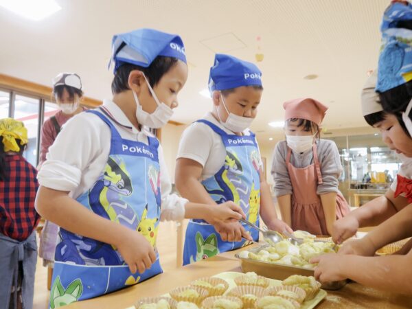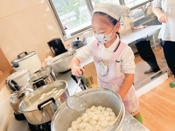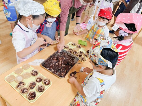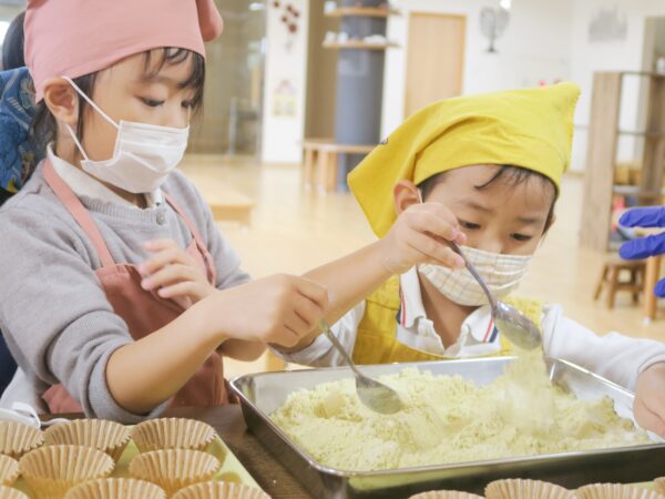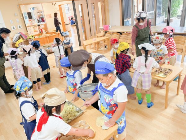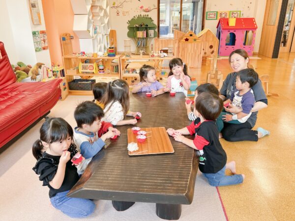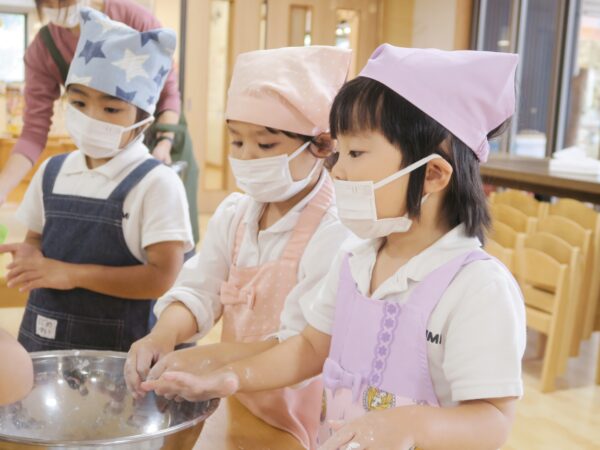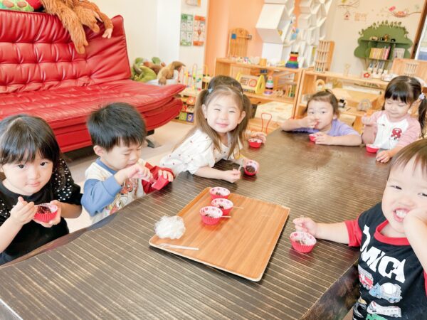 お団子作り、最終日のお味は「あんこときなこ」。 上新粉と白玉粉、それぞれの感触の違いを手のひらで感じながら、 少しずつ生地がまとまっていく様子を楽しんでいました。 今日は、うさぎぐみの子どもたちにも、あんこをおすそ分け。 「あま〜い!」「おかわり!!」と嬉しそうな声があがり、 お口のまわりには、あんこの“おひげ”ができていました。 笑顔あふれる、あたたかなお団子の日になりました。