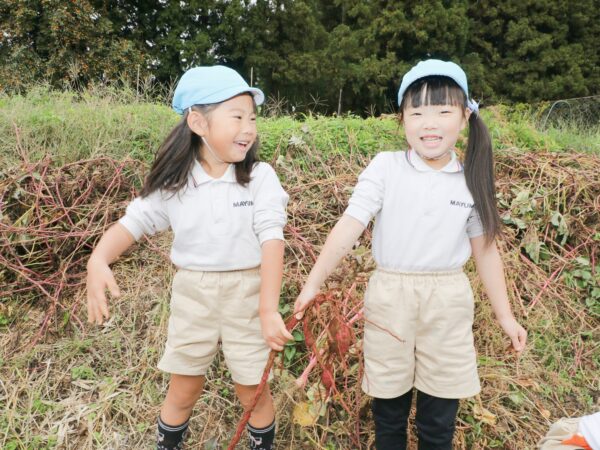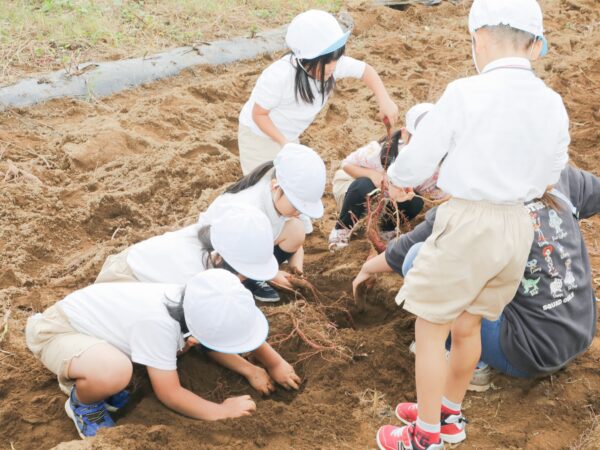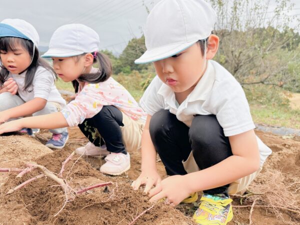 根っこが繋がっている様子や、沢山のサツマイモを見て歓声をあげていました。