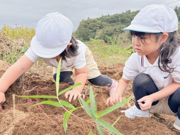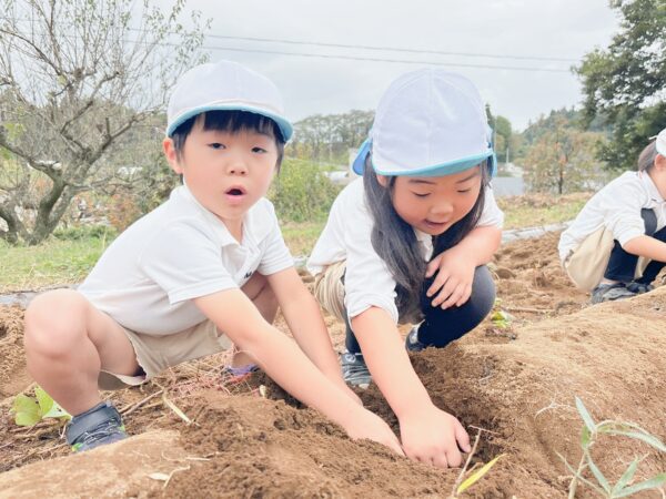 保護者の方のお手伝いも頂いて、年長児みんなで畑にいってきました!