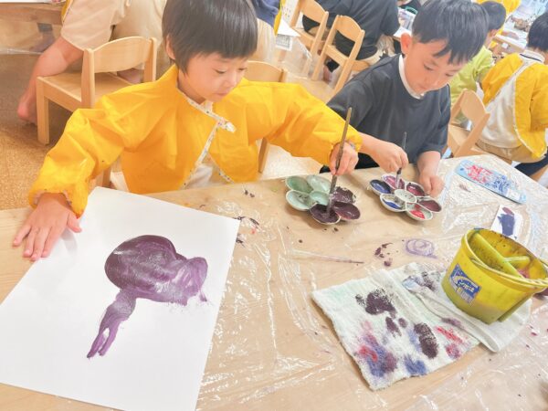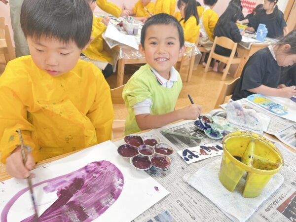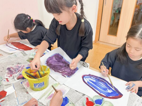 午後は、混色を楽しみながら、サツマイモの絵を描きました。