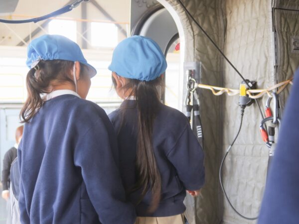 現地に到着すると早速、隊員の方の話を聞いたり、活動映像を見たりしていきました。