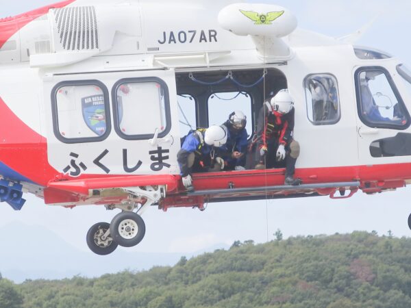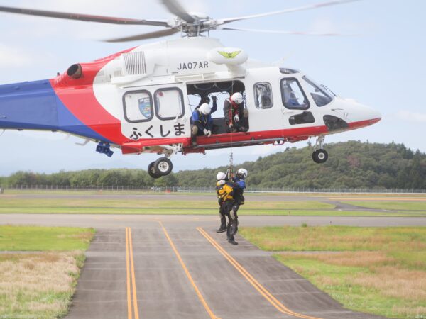 格納庫にあるヘリコプターにも乗せてもらい、その後は隊員の方々による訓練も披露していただきました。
