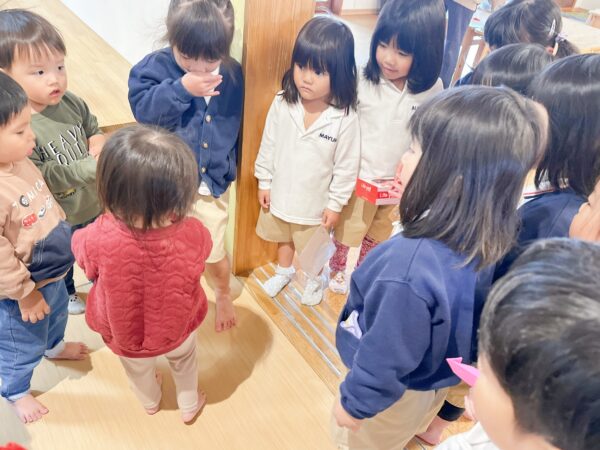 明日は、まゆみぷらす恒例のハロウィンパーティー 子どもたちは、ドキドキ、ワクワク、楽しみにしています。 おばけから手紙が届いて、子どもたちは大喜びでした。 そして、明日のハロウィンを前に、幼児部の子どもたちは、キャンディー作り。作ったキャンディーを早速、乳児部さんにおすそ分け!! 乳児部さんも幼児部さんも、明日は楽しもうね!! 連日がんばったファッションショーも成功しますように