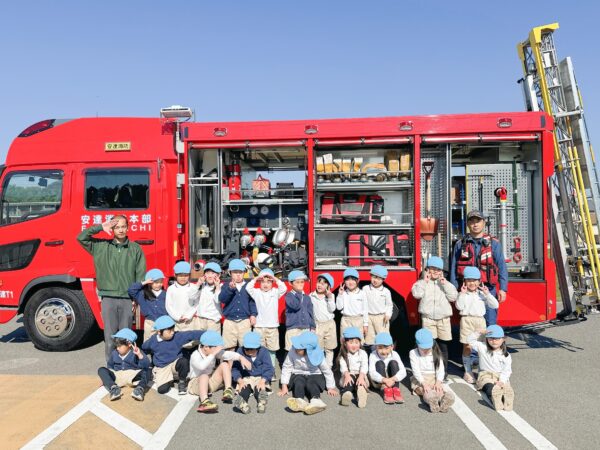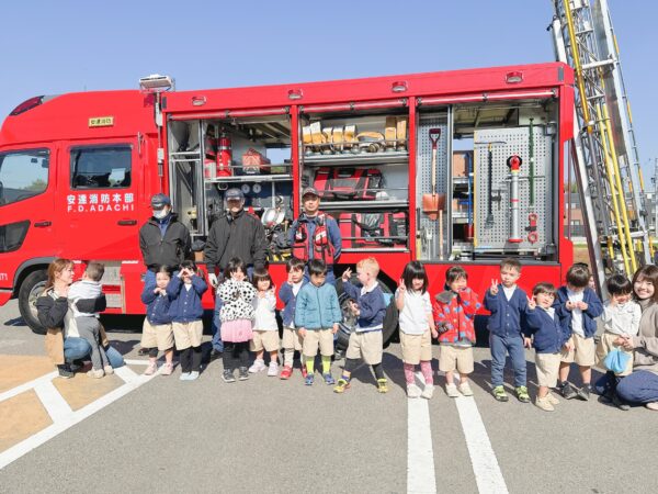 そして、大人たちは初期消火訓練、子ども達は消防車見学をして記念撮影☆