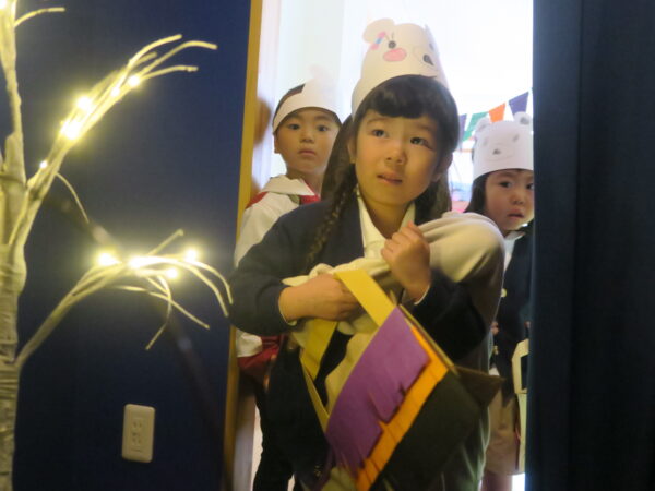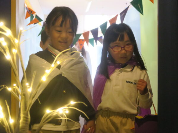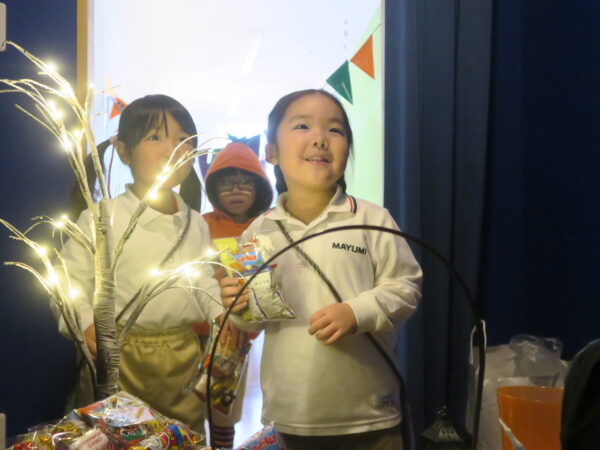 少しだけ暗く、装飾された部屋に行き「トリックオアトリート」「おかしをくれないと、いたずらするぞ!」の掛け声とともにお菓子を受け取り、笑顔があふれる時間となりました♪