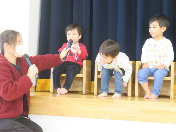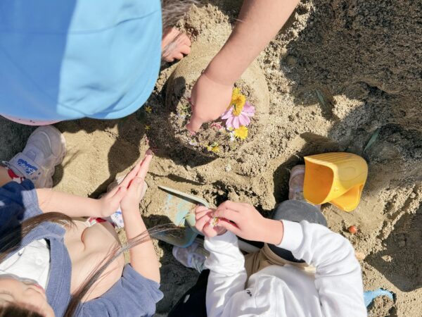 やっと11月、待ちにまった日がやってきました。 11月お誕生日のみんな、お誕生日おめでとう! 今月のお話は、「さるかにがっせん」 園庭では、秋の草花を使って、ケーキ作りを楽しむ姿がありました。