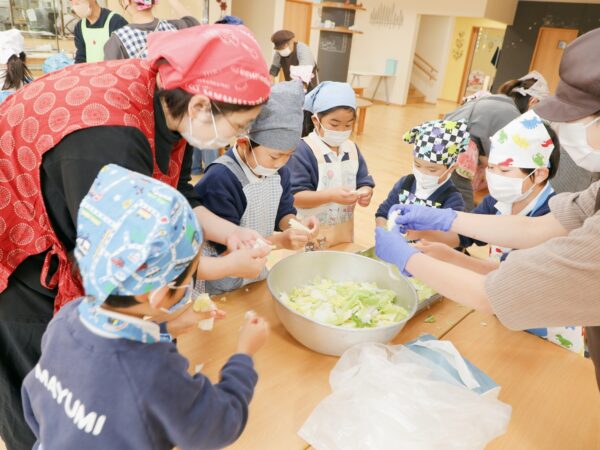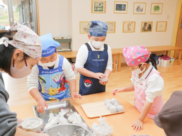 たいよう組・うみ組の子ども達が力を合わせて芋煮会の準備をしてくれました! 芋煮を作るグループ、おにぎりを作るグループにわかれ行いました。 出来上がった芋煮は、まゆみぷらすとこどもの家のお友達で、美味しく頂きました。 ごちそうさま、たいよう組さん・うみ組さん。 とっても美味しかったよ! 愛の家のおじいちゃんおばあちゃんもたべに来てくれました。 お手伝いにきてくださった保護者のみなさん、ありがとうございました。