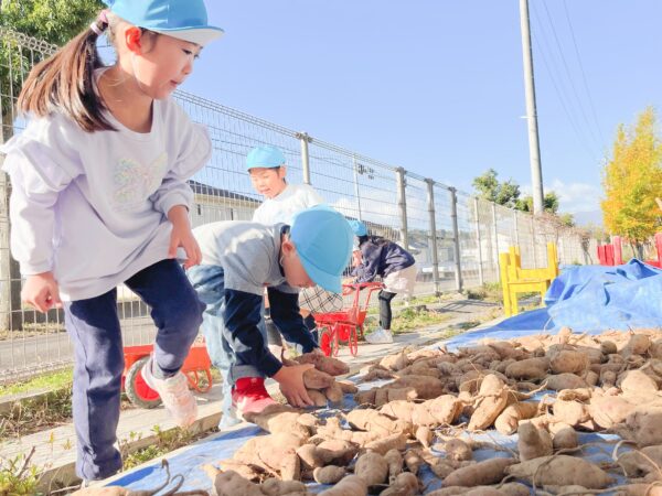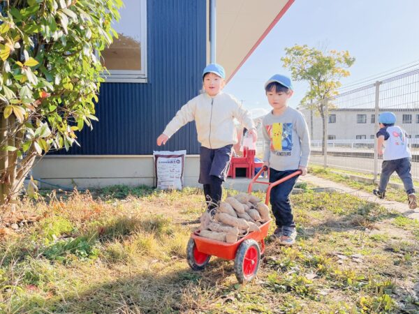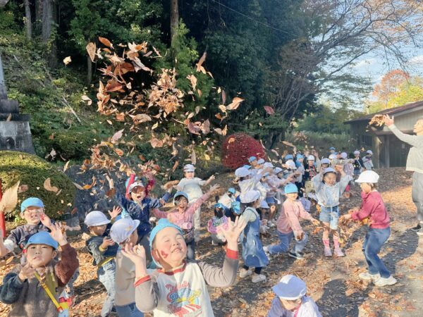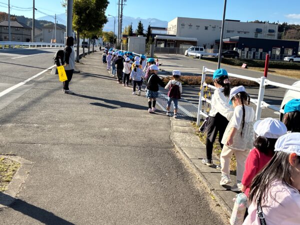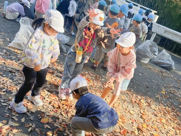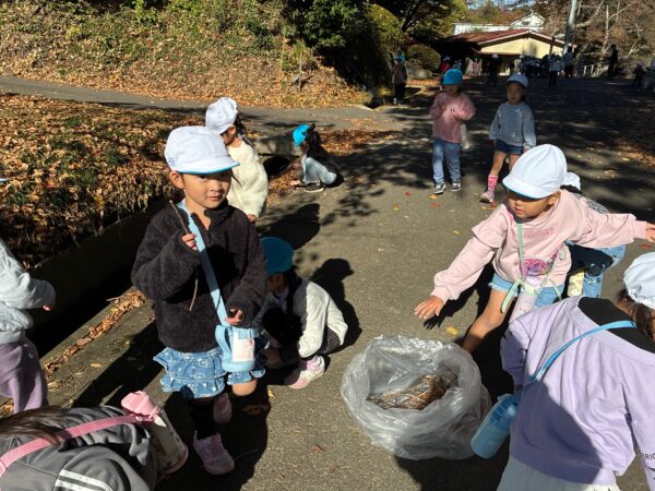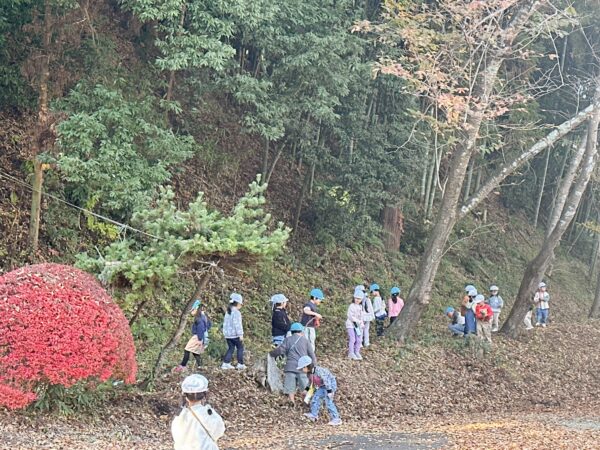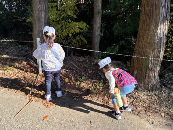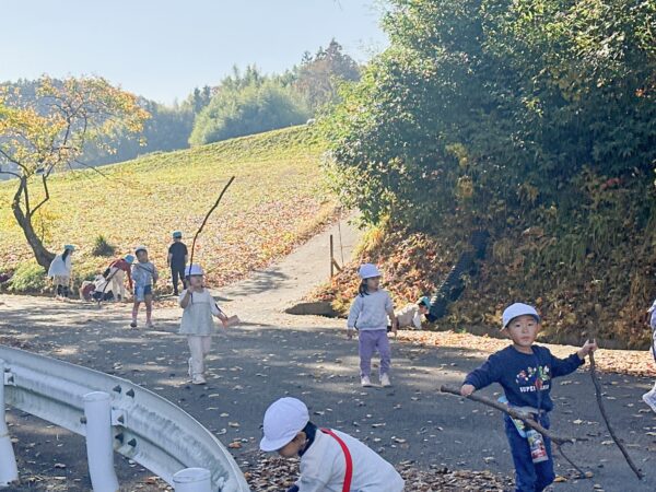 午後には年長さんと年中さんで枝を拾いにいってきました!