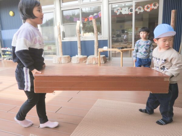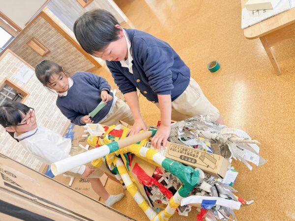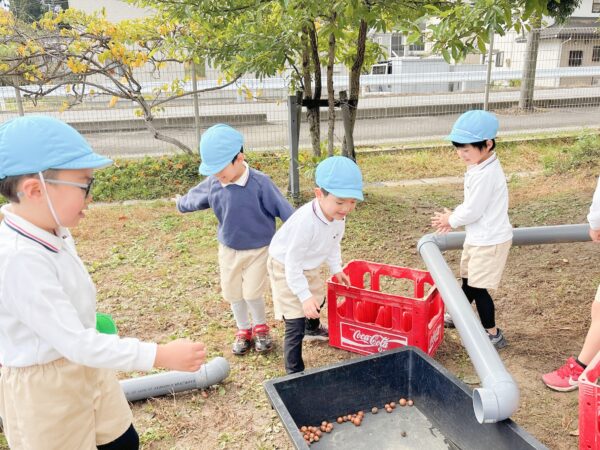 2学期も終盤に差し掛かり、園内のあちこちで、子どもたちが“力をあわせて”取り組む姿がたくさん見られています。 友だちの手をそっと貸したり、声をかけ合って挑戦したり、 ひとりでは難しいことも、みんなと一緒ならできる—— そんな場面が日々の生活の中にあふれています。 協力し合う楽しさや、できた時の喜びを分かち合いながら、 子どもたちは大きく成長していることを感じます。