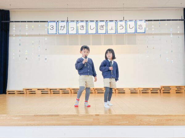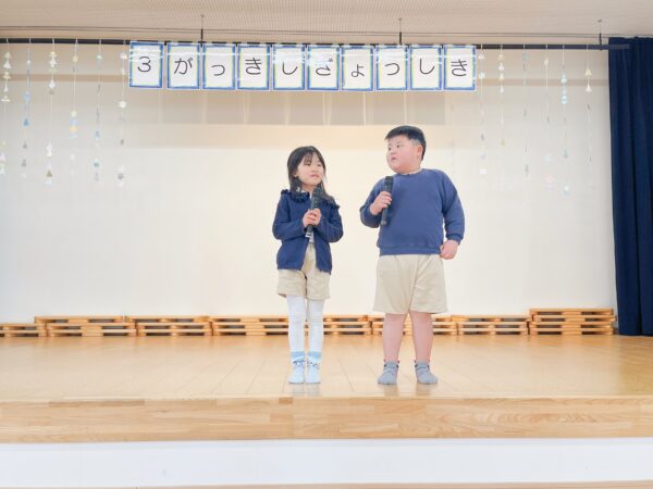 本日、1月9日より3学期が始まりました。 始業式の際は緊張感をもって参加する様子も見られ、子どもたちの成長もこの時間に感じられました。 また、司会の先生の話を聞きつつ、クイズとともに3学期に控えている行事にも期待を寄せていきました。 3学期に全員が揃って過ごす日数は44日間です! 卒園・進級に向けて、職員一同、子どもたちの成長を後押ししていきたいと思います!! 改めて、本年もよろしくお願いします。