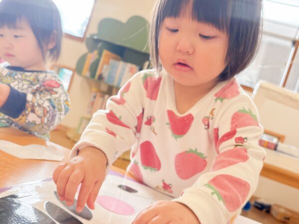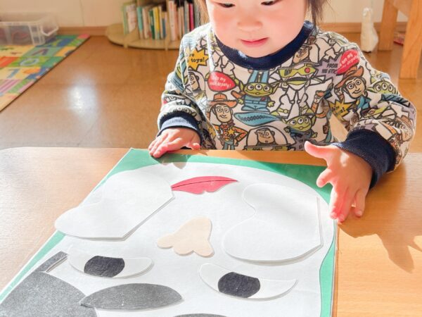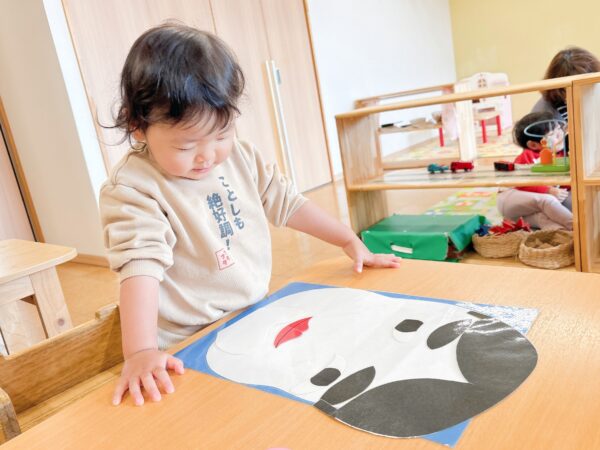 年が明けてみんなでお正月遊びをしました。 乳児部はどうやって遊ぶのか見ているとお腹を抱えて笑ってしまいました。まさか自分が福笑いになるとは… 一部しか見せられないのがとても残念です。笑いすぎてうまく写真が取れませんでした。すいません。