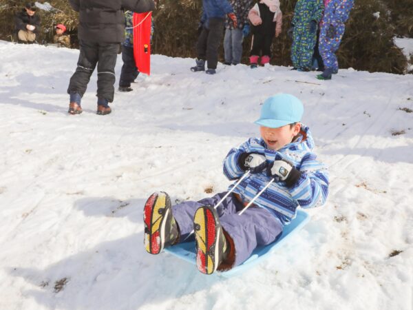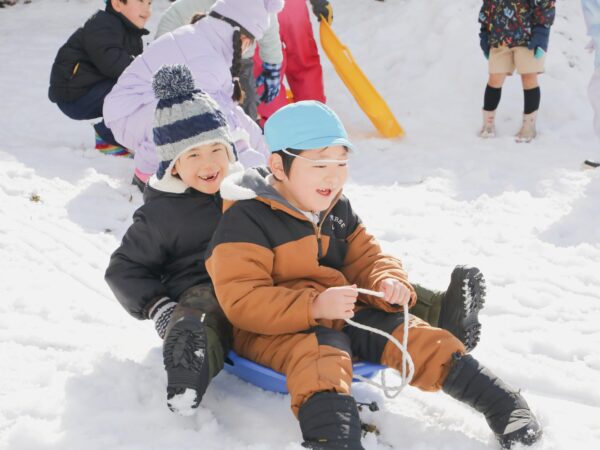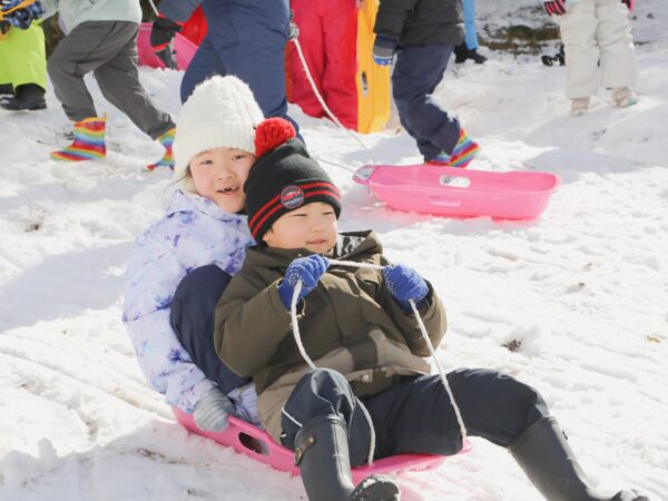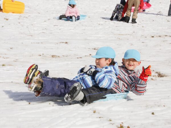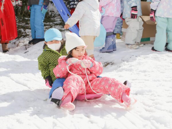 園庭の雪はあっという間にとけてしまいましたが、園バスに乗って、ちょっと「まゆみ」までお出かけしてきました。 そこには、びっくりするほど一面の銀世界が広がっていました! 長い斜面をそりで滑り、友だちと一緒に何度も挑戦。 笑い声を響かせながら、雪あそびの楽しさを存分に味わってきました。 ウェアやそりの準備にご協力いただき、ありがとうございました。 おかげさまで、冬ならではの貴重な体験を楽しむことができました。