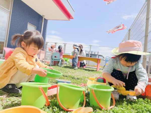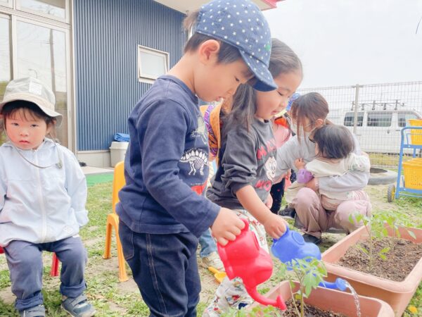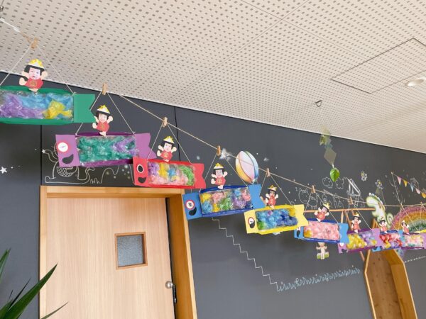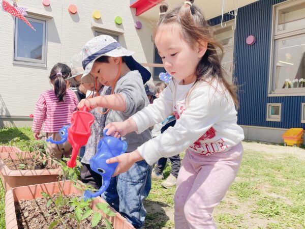 心地よい天気の日が多く、存分に戸外遊びを楽しみました! 広い第2園庭でたくさん身体を動かしたり、虫や草花を見つけたり… トマトの苗も植えました! 毎日水をあげては「トマトならないね~」と実りを楽しみにする子どもたちです! 室内では各々好きな遊びを楽しんでいます。 先日感触遊びをしながら作った鯉のぼりが完成しました! 鯉のぼりに乗っている金太郎に変身した子どもたちがとてもかわいらしいです♡