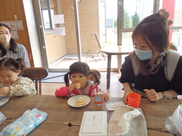 今年度1回目のプレスクール、たくさんのおともだちが参加してくれました。 みんなで先生の読む絵本を楽しんだり、手遊びをしたり、 ホールではピアノに合わせてリズム遊びをしました。 遊んだ後はおやつタイム。 「いただきます」はみんなでしました。こども園って楽しいね。