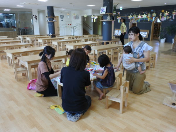 今日は、午後からたくさんのお友達が遊びに来てくれたので、急遽、七夕の短冊作りを行いました。
