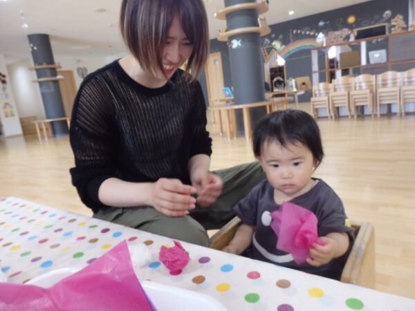 月曜日の親子制作は「くも」をつくりました。 色んな色の花紙をくしゃくしゃ丸めて、自分だけのステキな「くも」が完成!! みんな上手にできたね♪ 次回の親子制作は6月28日(金)「たなばたかざり」を作ります。