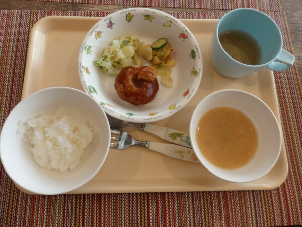 今日の昼食会のメニューは 大人気の『ハンバーグ』でした。 大きな手作りハンバーグを食べて お家の人と『おいしいね!!』と言いながら 嬉しそうに食べていました。 次回の親子昼食会は1月27日(月)です。