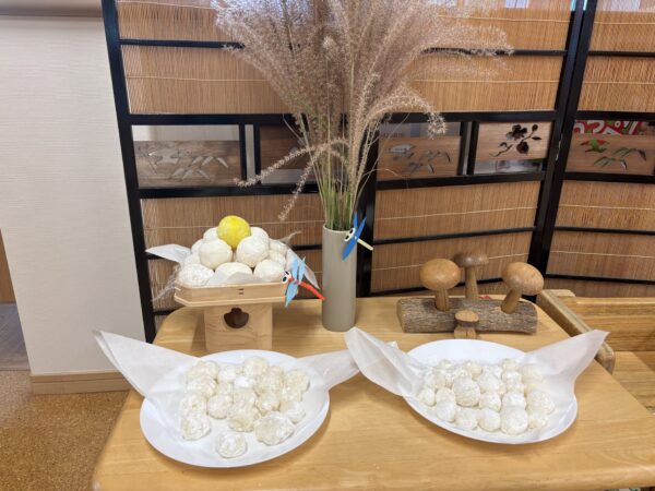 今日はこども園の『おつきみ会』に参加しました。 参加したお友だちは、十五夜の由来や 幼児部の発表を楽しんでいました。 『おつきみ会』の後は、センターで 月見だんごを作って飾りました。 ランチ時間に合わせて、『ぷらすみそしる』を準備します。 初開催の今日は、具だくさんのみそ汁と お家から持ってきたお弁当で 楽しいランチタイムになりました。 ぷらすみそ汁は、不定期で開催します。