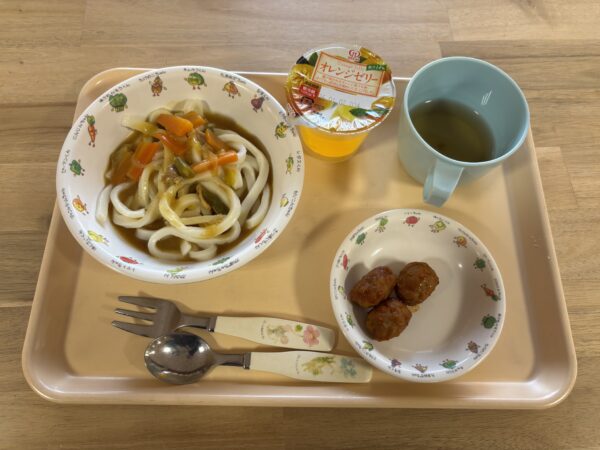 今日の給食のメニューは「カレーうどん」